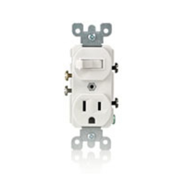 Leviton 5225 15 Amp, 120 Volt, Duplex Style Combination Single Pole Switch/Receptacle, Grounding, White,