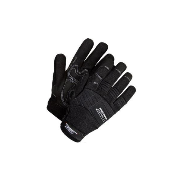 General purposed mechanic s gloves. Black synthetic leather palm. Neoprene knuckles with new ribbed designs. Lightweight, breathable spandex back. Elastic wrist with hook and loop closure. Mechanic s gloves leather palm with gel-packs.